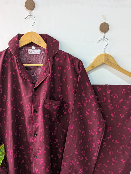 Burgundy Floral Linen PJ Set
