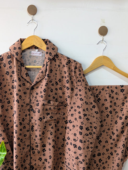 Brown Petals Linen PJ Set
