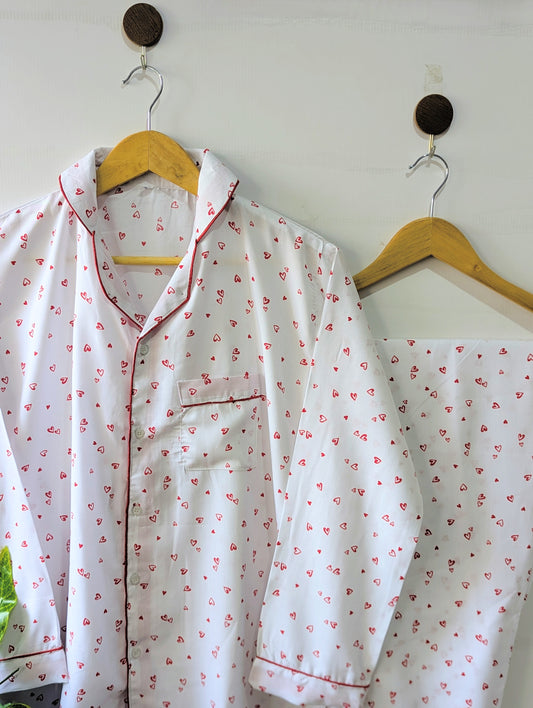 White & Red Hearts Linen PJ Set