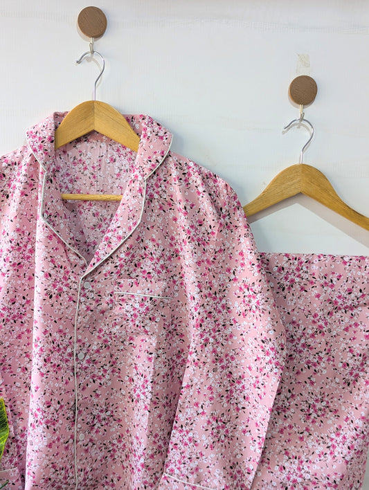 Pinkish Petals Linen PJ Set